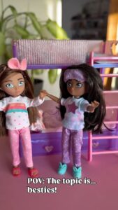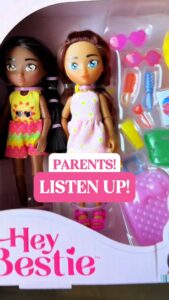 Hey Bestie dolls come in pairs, so imaginative play begins at first sight! That’s TWO dolls in every box. With 8 points of articulation, silky-soft hair, and changeable clothes, Hey Bestie dolls are designed to match every child’s playful spirit.